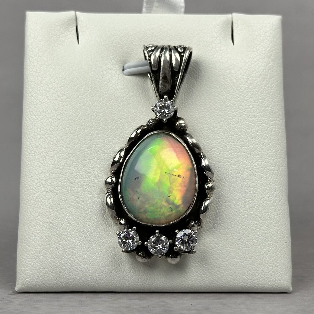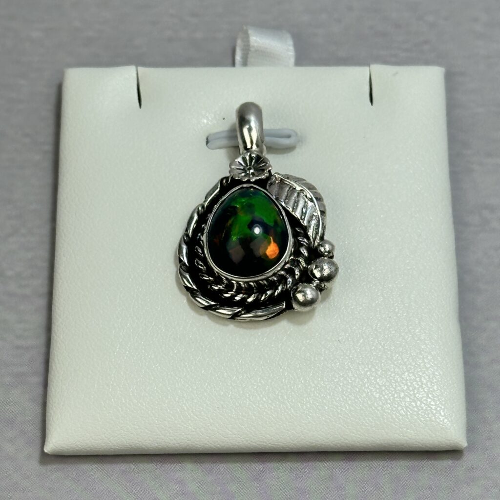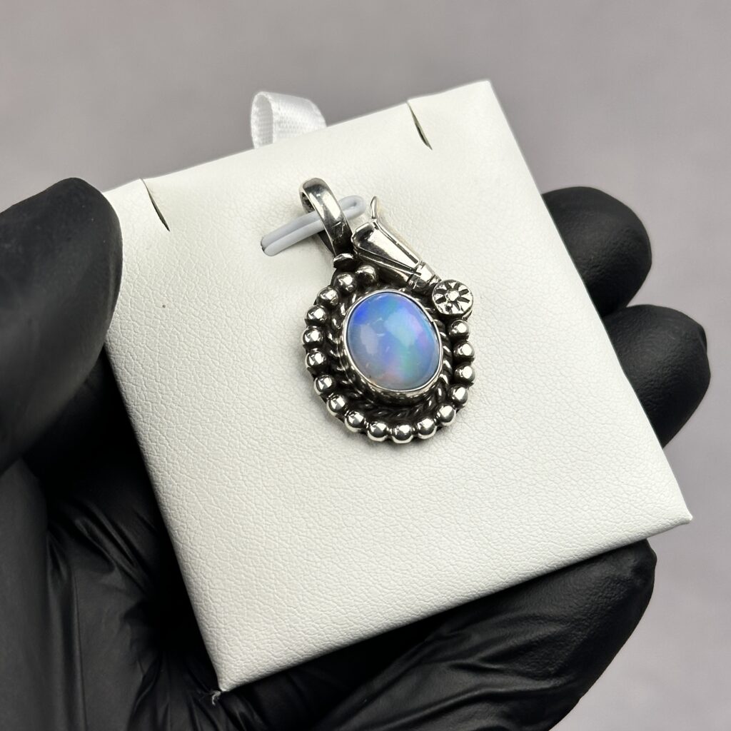 Light Blue Fire Ethiopian Opal Pendant – Navajo Made – Homer Begay