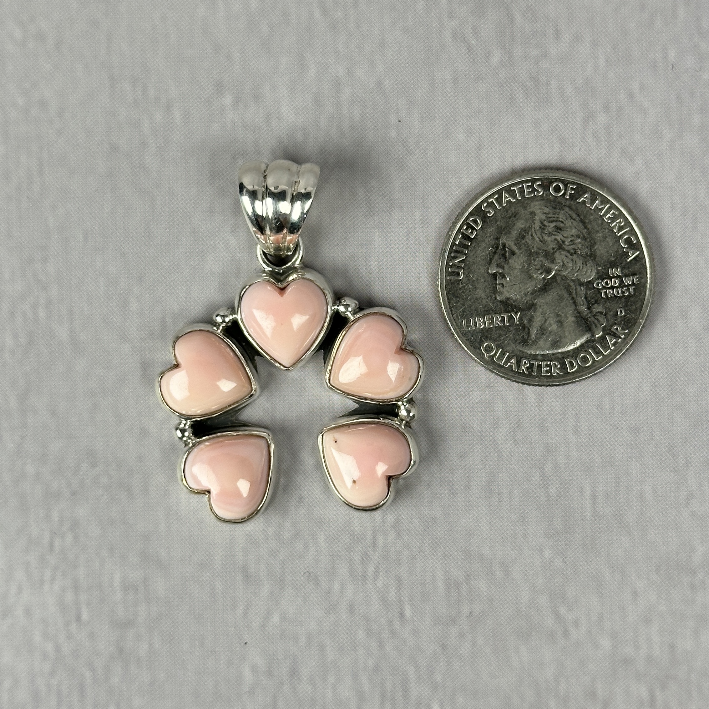 5 Stone Pink Conch Heart Pendant – Handmade – 7mm Bail