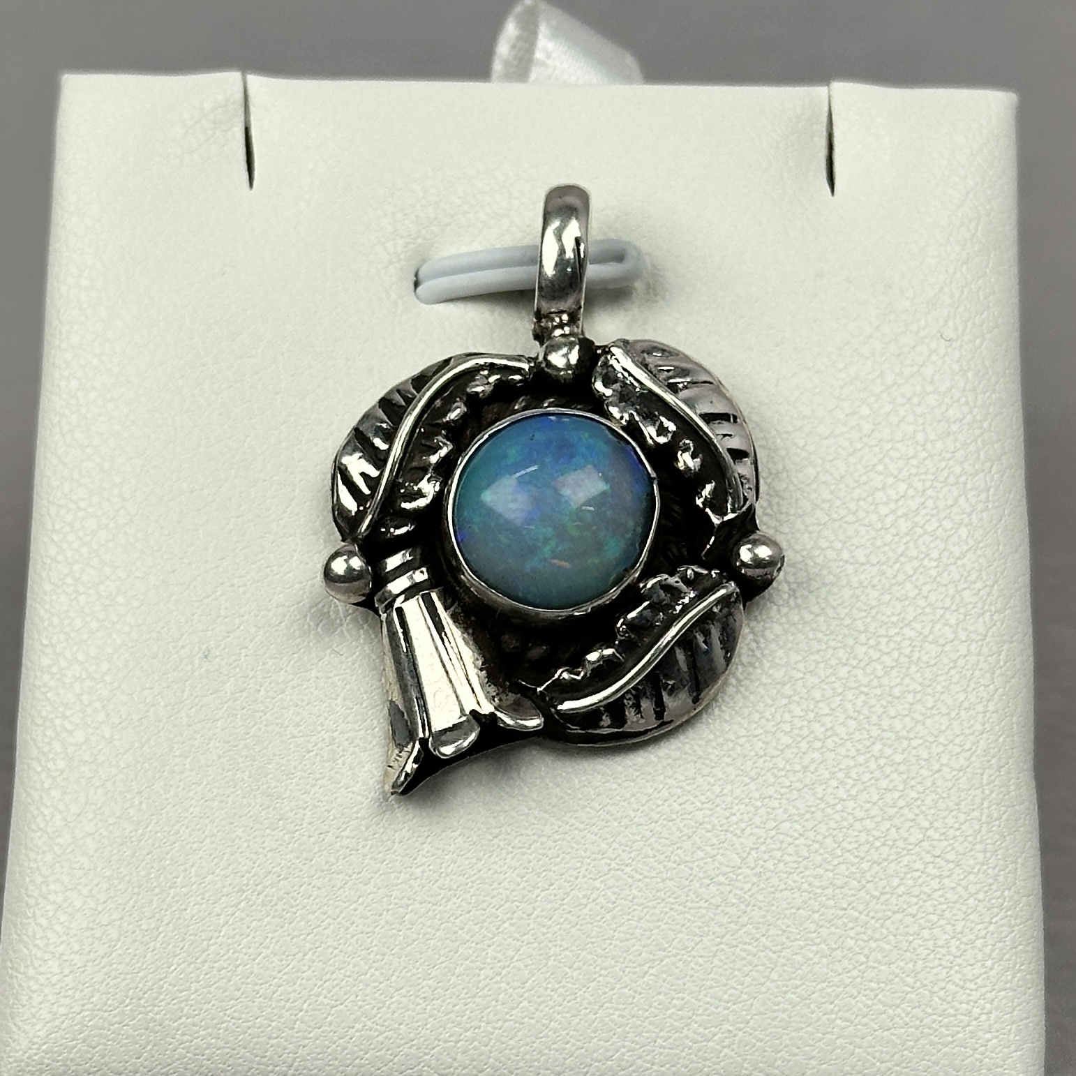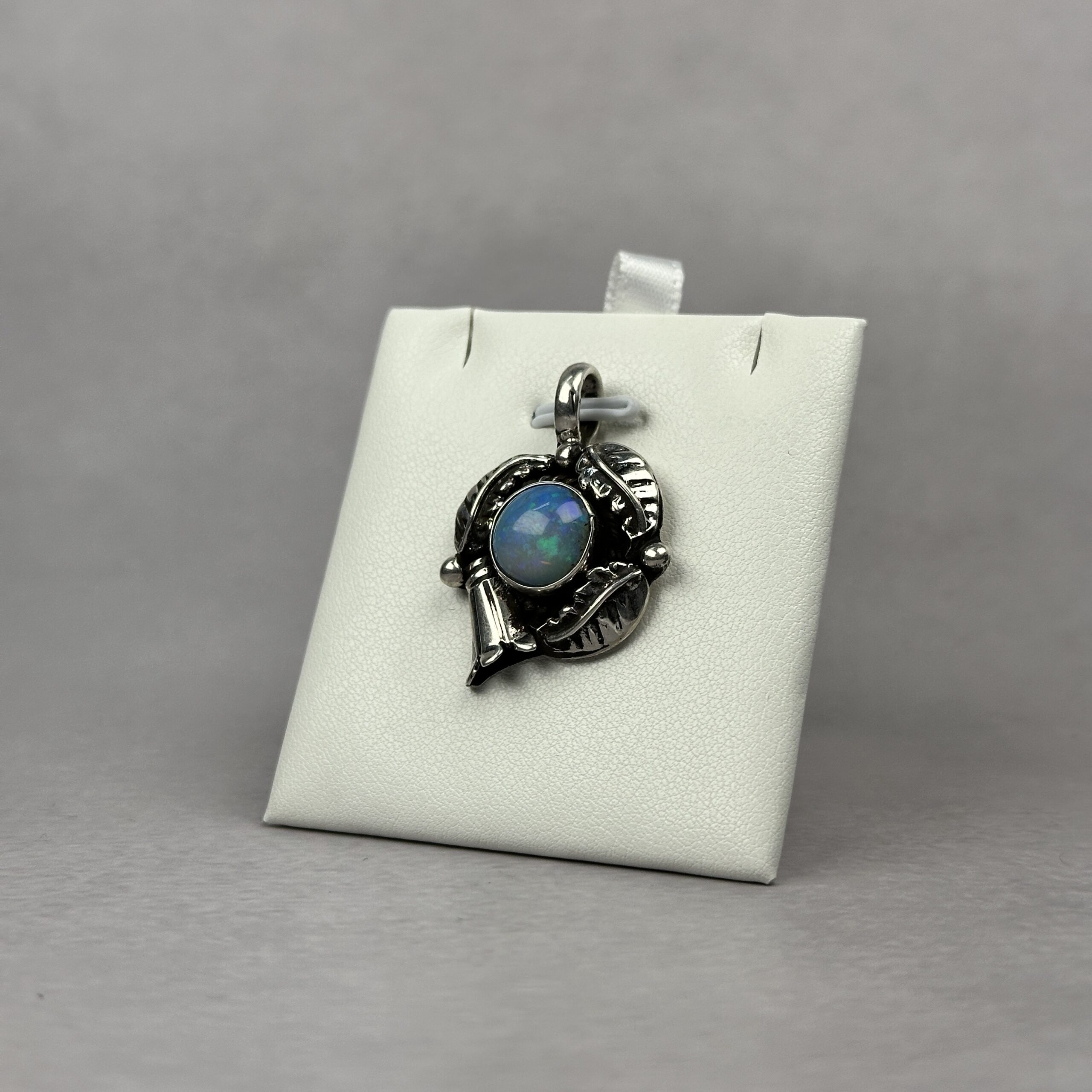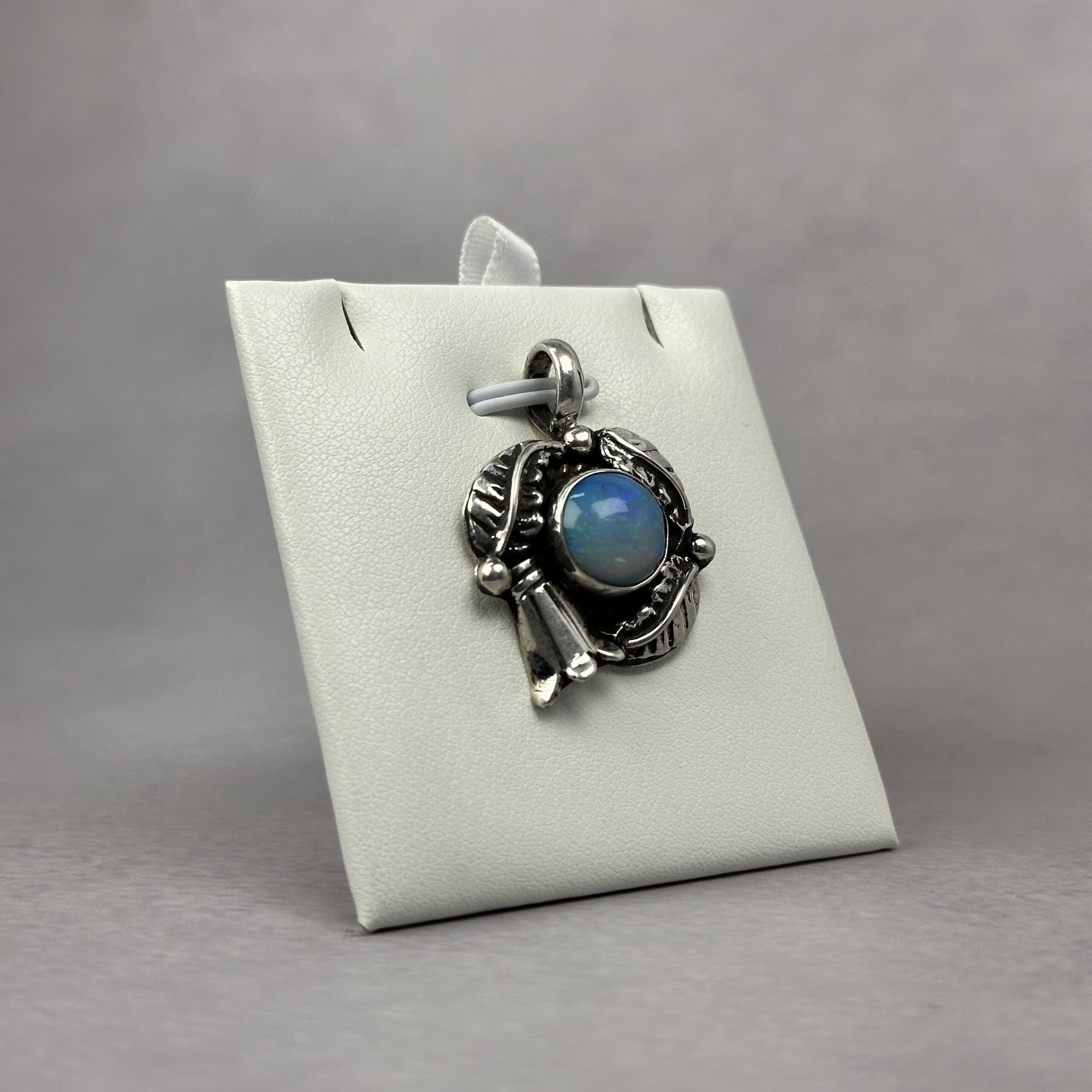 Ethiopian opal is celebrated for its vibrant, ever-changing play-of-color—alive with flashes of blue, and fire that shift with movement and light. The use of Ethiopian opal in traditional Navajo jewelry is extremely uncommon, making pendants like this highly collectible and increasingly hard to find.