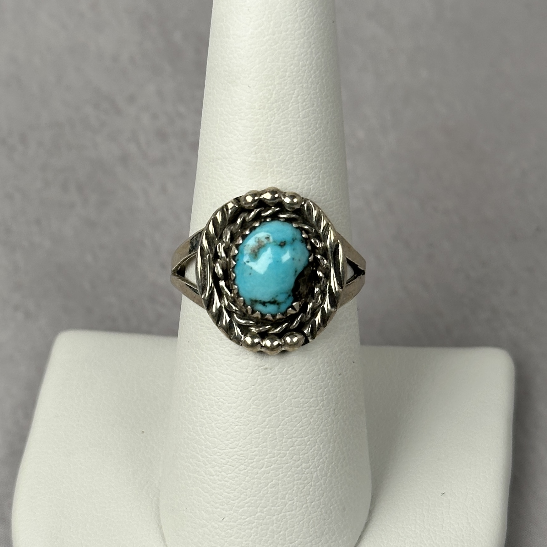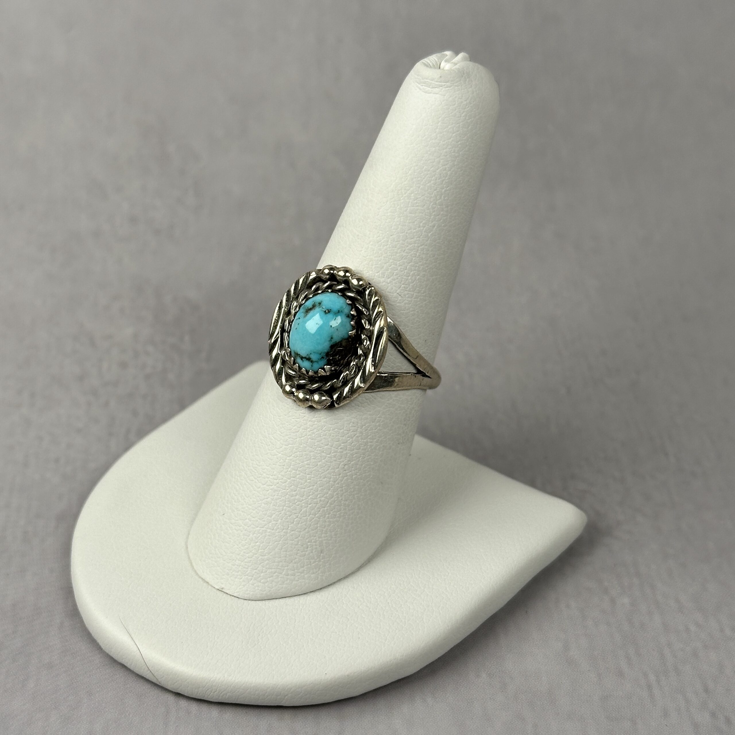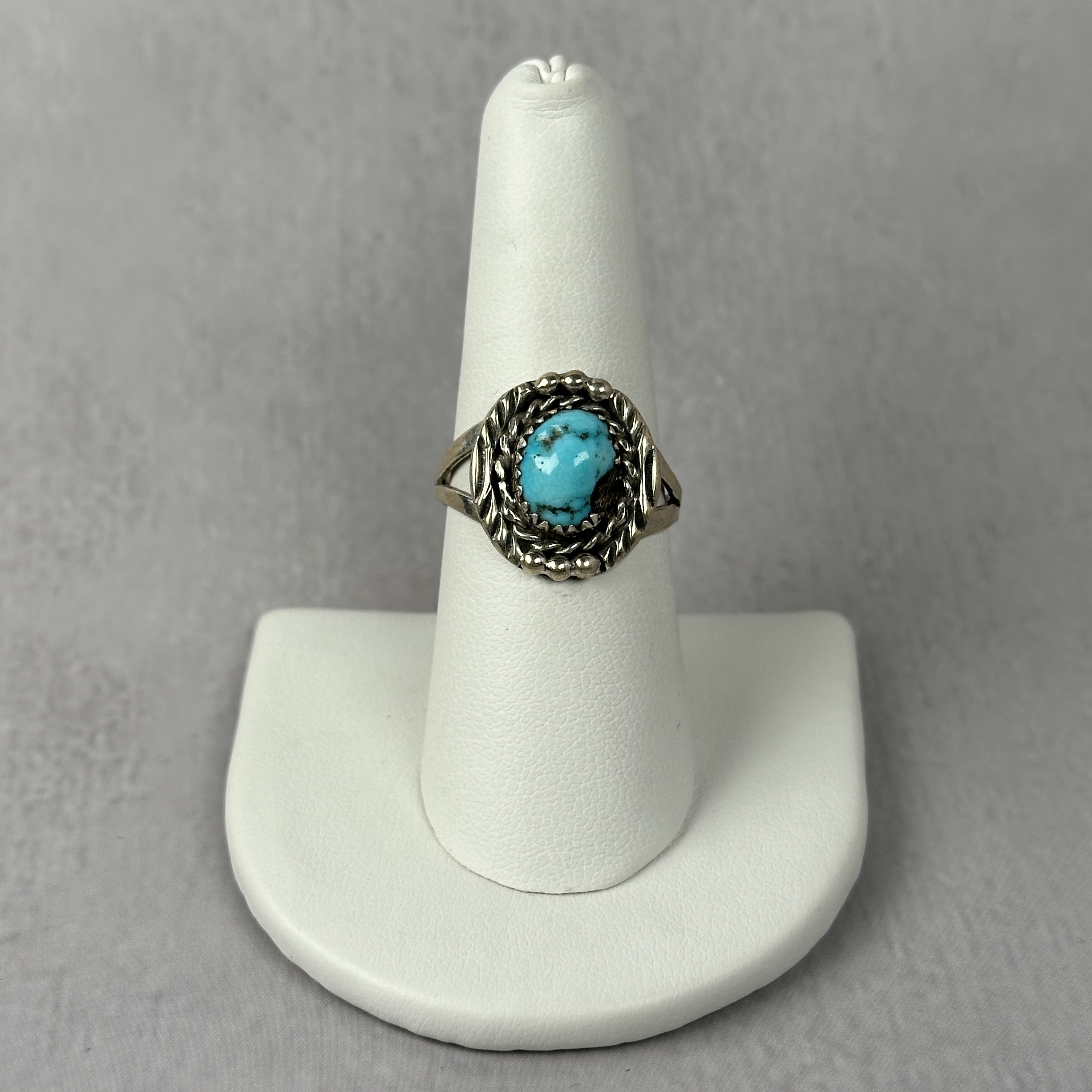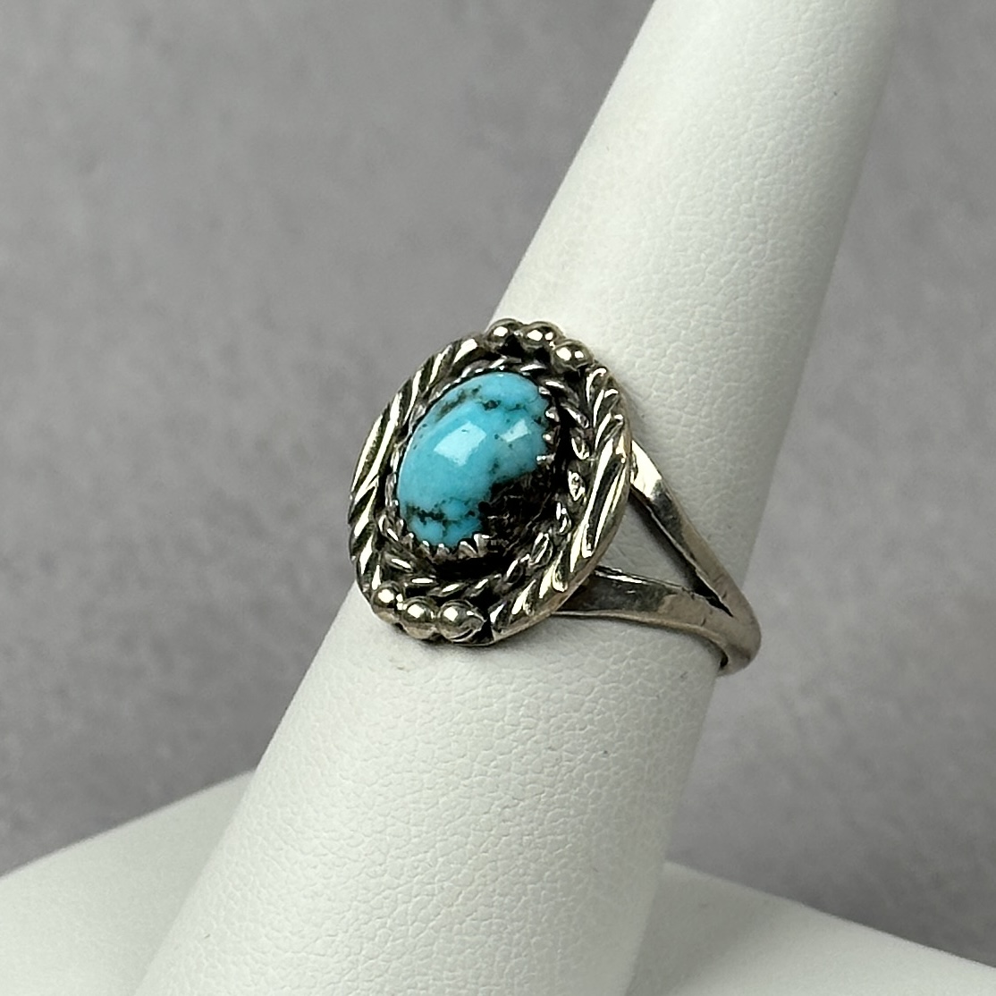 Handcrafted Navajo ring featuring Kingman turquoise set in sterling silver.