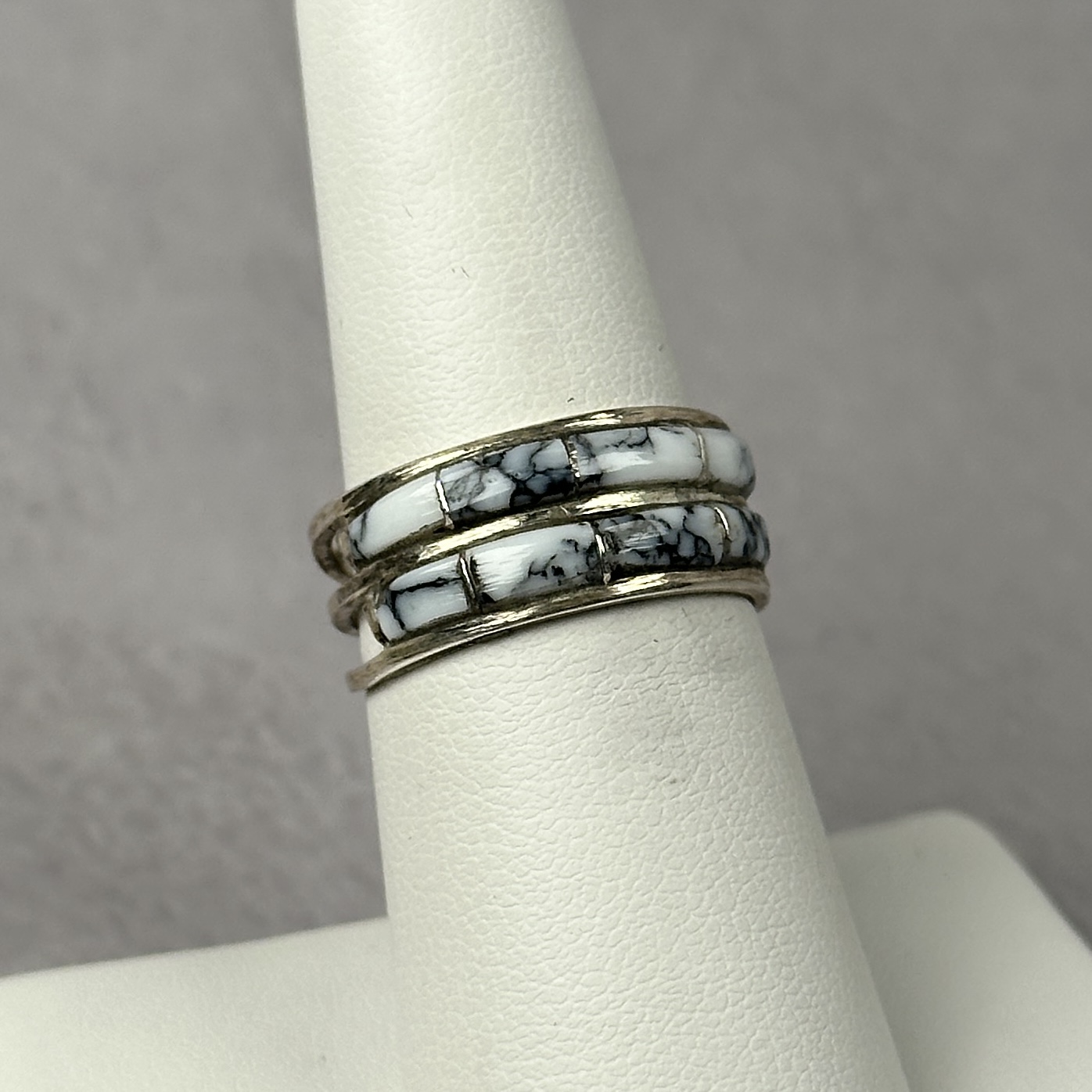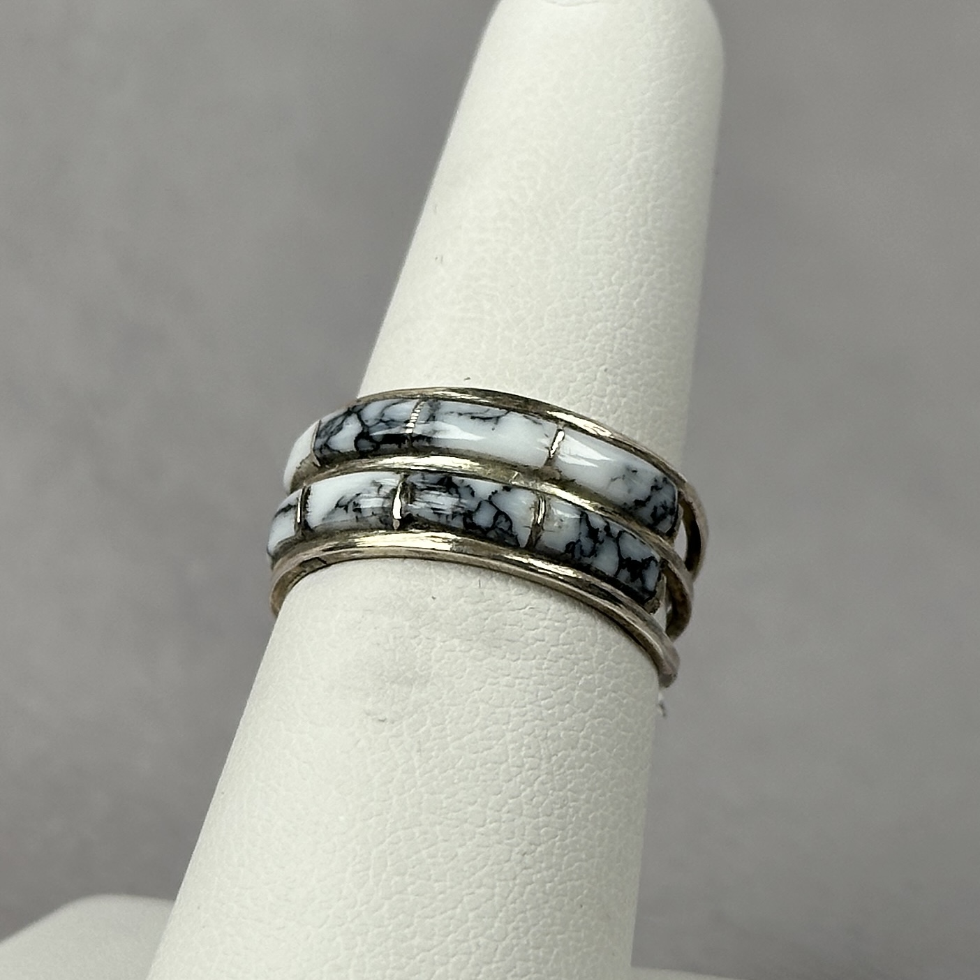 White Buffalo Inlay Ring – Navajo Made – Debbie Livingston – Sz 7