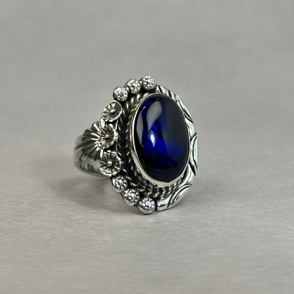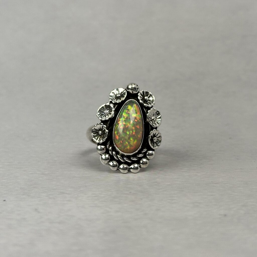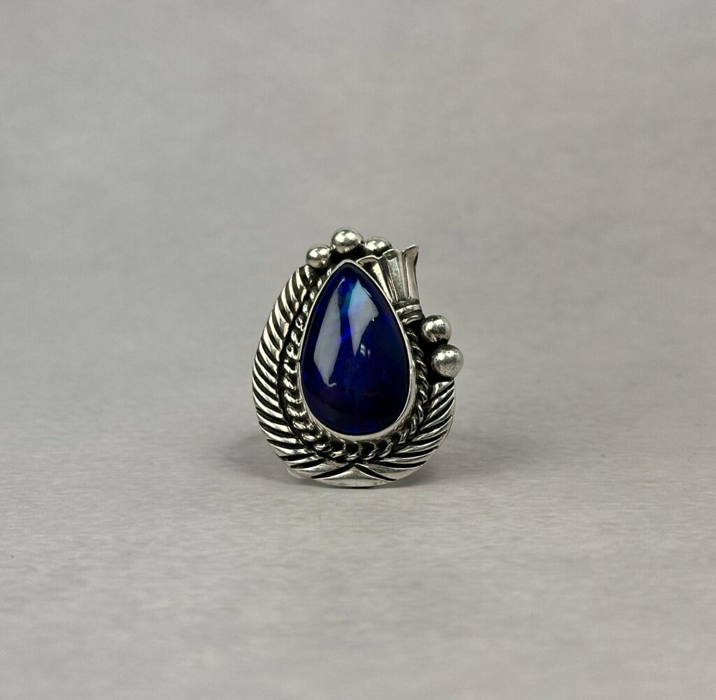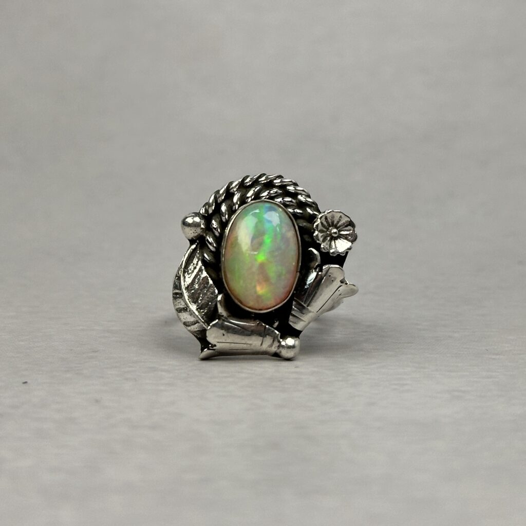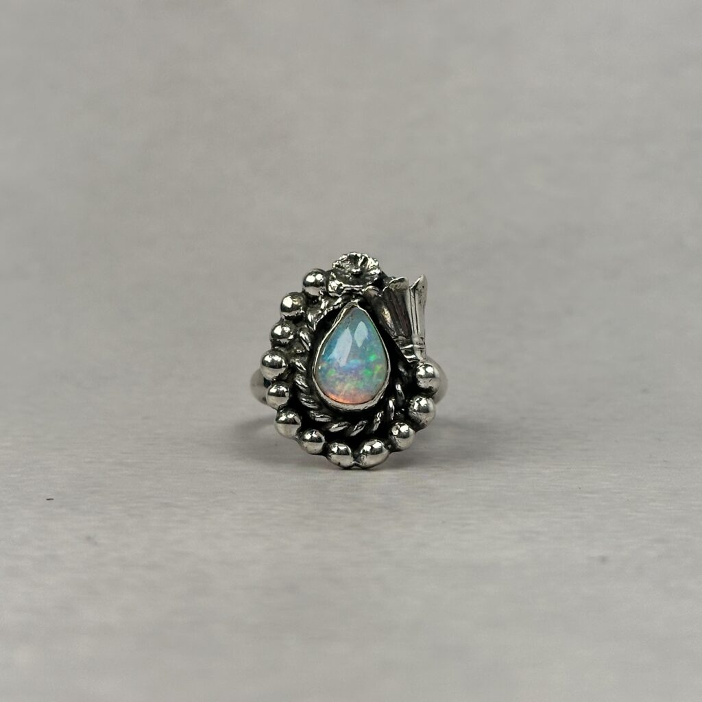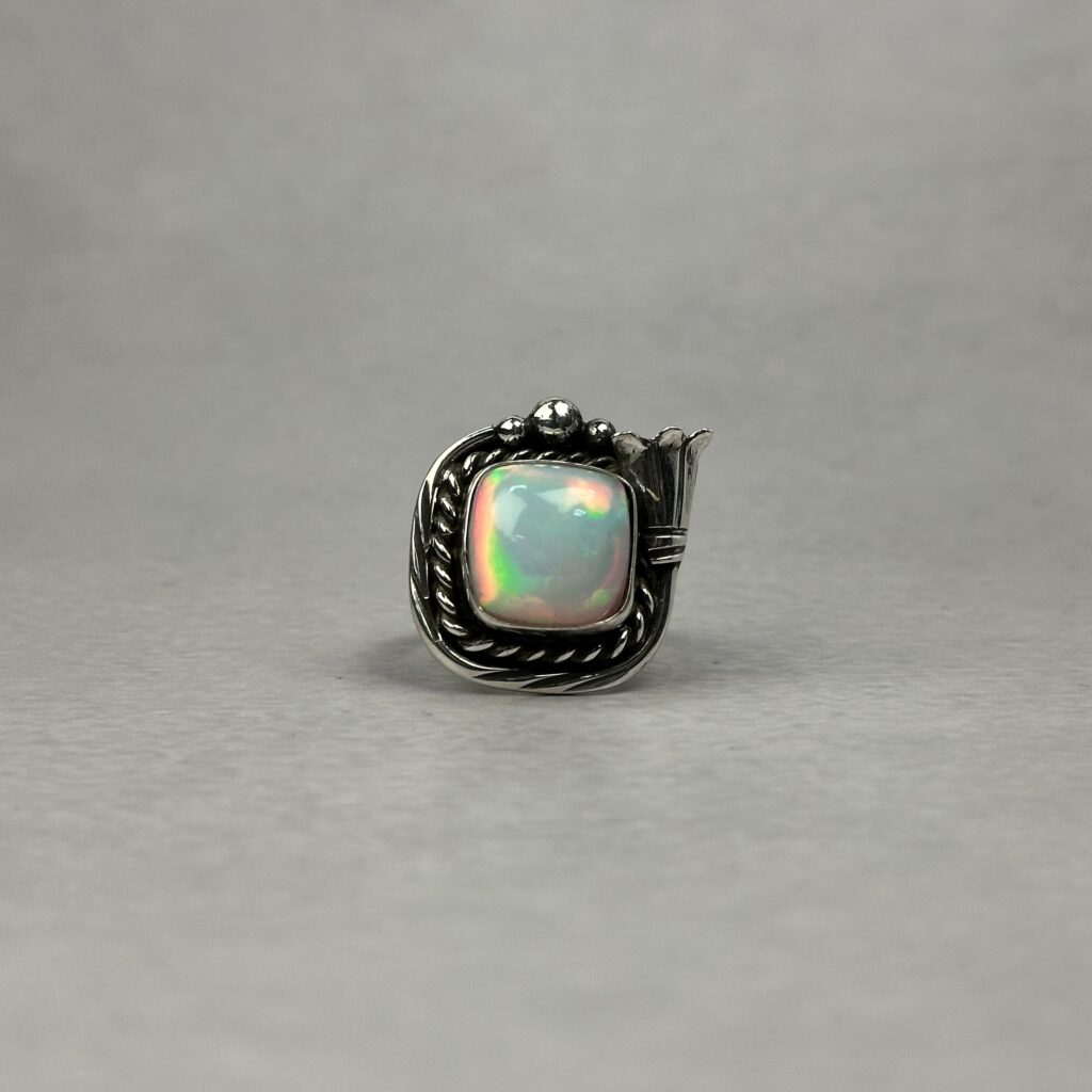 Fiery Bluish Pink 1ctw Ethiopian Opal Ring – Navajo Made – Homer Begay – sz 8